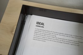 [1] Der Sammlungsraum widmet sich Zwischenzuständen zirkulierender Artefakte, Bilder und Objekte. Ihre Provinienz, das Narrativ ihrer Reise steht im Fokus und es wird ein Register von Navigationsdaten erzeugt. In dem fortlaufenden Format erfährt das Gesammelte eine Markierung im Übergang, ein situatives Update im Rahmen des IDEAL. Im Raum entstehen permanent wechselnde Konstellationen die in ihren jeweiligen Zuständen registriert und dokumentiert werden.
