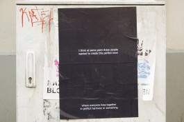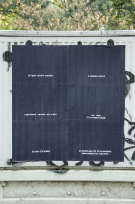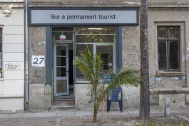 Zwischen Geschichten der Entfremdungen und unbestimmten Sehnsüchten nach einem Zuhause, wird das Konzept der multizentrischen Gesellschaft zu einer Möglichkeit die wechselseitige Beziehung der Beiden zu verstehen. Die Ausstellung mit dem Titel like a permanent tourist benutzt unterschiedliche Arten der Geschichtsschreibung und -erzählung, fragt nach dem Wen oder Was vor und hinter den Geschichten, stellt dabei Fragen nach einem Wo, das sich nur manchmal an einem konkreten Ort festhält, um sich dann wieder im Kontinuum des Erzählens aufzulösen. Neben urbanen Mythenerzählungen, Filmausschnitten, Zitaten von Geographen und weiteren gesammelten Bild- und Textfragmenten, wird ein Ich immer wieder in die Arbeit eingewoben. Denn ge- und erlebte Erfahrungen sind zentrales Element für den Ort, der hier Subjekt und Objekt zugleich ist.