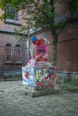 Dieser Widerstreit, der sich über die Jahre an dem Denkmal abzeichnet, ist Ausgangspunkt für das Projekt „2 Tonnen Kalkstein“ und öffnet Fragen dazu, was dieses Denkmal heute vermittelt, wofür es instrumentalisiert wurde und wie man anders mit der Skulptur umgehen könnte. Mit Blick über das Denkmal hinaus in unser diverses Viertel stellt sich auch die Frage: Welcher Erinnerungskanon ist hier festgeschrieben und wie könnte eine urbane Erinnerungspolitik aussehen, die das vielschichtige Erbe unserer pluralen Gesellschaft abbildet? Das Projekt wird so von der konkreten Frage nach einem zukünftigen Umgang mit dem Denkmal begleitet.