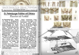 /// "[...] He, Putin, expressly approved of any preparations by Yeltsin and the military to bring about a Pinochet-style dictatorship in view of the difficult path of the private sector. Putin's remarks were received with friendly applause by both the German company representatives and the deputy German consul general who was present."