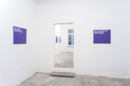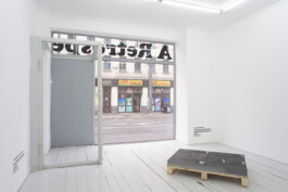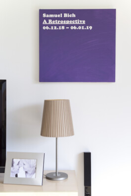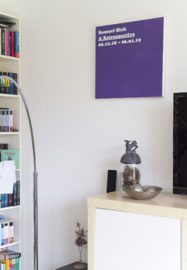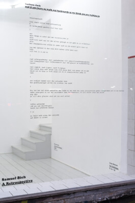A retrospective is usually , what the word in itself already describes, the view back on an artistic production that happend in the past. Samuel Bich au contraire reframes the concept of the retrospective in the other direction and uses it to point into the future. This inversion turns the review, the historicisation, the implementation into a common discourse and distribution become itself the material of his production. Over several exhibiton venues he produces a web of dispersed references and moments of circulation. While at IDEAL he shows paintings of a range of international retrospectives that happen parallel to his own show, there is an assamblage of fictional catalogue texts shown at BISTRO21. Another part of his show is an arrangement of pictures in a private flat and a staging in the exhibition „Printed Matters – The Politics of Printing“ , curated by Ilse Lafer in the gallery of the HGB Leipzig. The movement between the different exhbition venues, the links to other exhibitions, the subesequent speculative production of meaning, as well as the collaborative practice with the authors, break the traditional understanding of a coherent representation of an artistic persona. What‘s left is the artist as mediator and regulative authority and the exhibition is in permament transition.