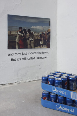 Between a history of alienated displacement from and longing for home, the possibility of a multicentered society understands the reciprocal relationship between the two. The exhibition like a permanent tourist uses strategies of (hi)storytelling, asks about a whom or what in front and behind the stories told and asks questions about a where, that only sometimes gets fixed onto a geographical location, only to soon dissolve back into the continuity of the narrative. Next to Urban Myths, Film Excerpts, Quotes by Geographers, an I is woven into the work, as lived experience is a central element within the subject of place, here simultaneously acting as subject and object.
