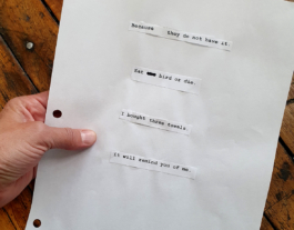 Die Arbeit EAT BIRD OR DIE // FRIß VOGEL ODER STIRB - LETTER FROM ABROAD ist eine Collage aus Zitaten aus verschiedenen Briefen von Otto Quellmalz, die von der bildenden Künstlerin Anna Schimkat gesichtet, transkribiert und chronologisch angeordnet wurden. Die Arbeit erscheint gleichzeitig in Movement Research, einem Performance-Magazin in New York City. EAT BIRD OR DIE ist Teil eines größeren Rechercheprojekts der Künstlerin, die derzeit Artist in Residence am ISCP (International Studio and Curatorial Project) ist und über sächsische Auswanderer in die USA, deren Rolle in der amerikanischen Textilindustrie und den Einfluss von damaliger Migration auf heutige gesellschaftspolitische Zusammenhänge forscht.