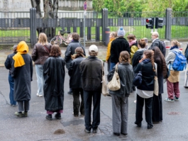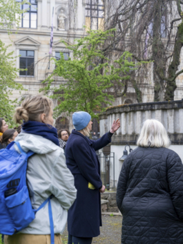 Die Performance in der Nähe der HGB findet statt in Kooperation mit der Ausstellung “Partizan★ke Art – Die Kunst des weiblichen Widerstands in Jugoslawien und Kärnten”, die den Fokus auf den bis heute wenig sichtbaren weiblichen Widerstand gegen die deutsche Besatzungsgewalt und die Achsenmächte in Jugoslawien legt.