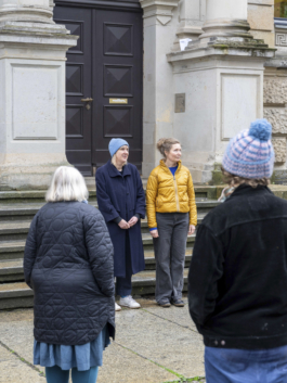 aufknoten/aufmerken, sich wieder verbinden ist eine Recherche zur Zeitzeugenschaft im öffentlichen Raum, eine performative Situation in der Nachbarschaft von Pflanzen. Dabei blickt die Performerin Angelika Waniek zusammen mit Inga Martel, Künstlerin und somatisch Forschende, auf individuelle Lebensgeschichten, subjektive Erfahrungen, Pflanzen und ihre Spuren. Die Zeit, die bezeugt wird, ist die des Nationalsozialismus. Die Zeug*innen sind diejenigen, gegen die sich die Gewalt im Nationalsozialismus richtete, aber auch Bäume als vermeintlich stumme Zeugen, denen sich Waniek und Martel zuneigen. Zwei davon stehen in unmittelbarer Nähe des Kunstraums IDEAL und der Hochschule für Grafik und Buchkunst in Leipzig. Orte, denen die Künstlerinnen verbunden sind.