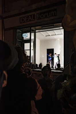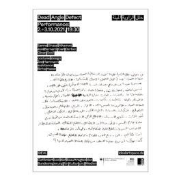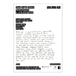 The performance "Dead Angle Defect" by Samra Ghazal Alhamwi, Joni Bernhard, Carl Gerber and Ginan Seidl is the forth episode at the exhibition programme IDEAL Forum (19.05. - 05.12.21). In the course of the processual project several Interventions by different artists will continuously transform the spatial structure of IDEAL Forum.