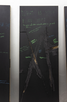 Blind spot - a visual field defect, undetectable, unnoticed, calculated away from the brain. Scotoma, insensitivity to light, no image recognition possible. Dark tissue, fields without fortune, exclusion fields. Dead Angle behind me in my back invisible. A driving license, shoulder views, signs, accidents, rear view mirrors, material damage, danger to life, intersections, cameras, image recognition, reflections on blind spots. It hurts when someone touches it. Damages, shield, repair, operate, repairs, fittings. Car, autopilot, autoplastic flexibility. Inner adaptation, change of self. Alloplasty: surgical repair of defective tissue by implanting material outside the body. Don't be afraid of the prosthesis. Cross pollination, cross operation, new varieties. Material cross pollinates, multiple perspectives, the You meets Me, the Us. Pollen transplant, pollen surgery. A license to live. How can we see each other through our blind spots?