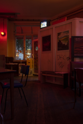Henkel and Pitegoff’s TV Bar opened in August 2019 and, alongside its use as a film studio, has hosted dozens of performances, concerts and readings in addition to being open regularly as a bar each weekend. The performers in Paradise, besides actors, are mainly, bar regulars, employees and neighbors of the bar. It has recently reopened post-lockdown.