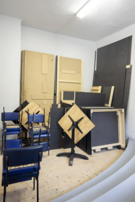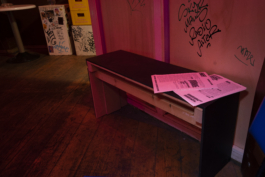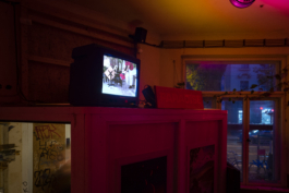 In the context of IDEAL Forum, the presentation of the film escapes the narrative embedding at IDEAL and is located outside the exhibition space in a bar. IDEAL becomes a point of reference, an immobilized infrastructure, including furniture that comes from both TV Bar and Goldhorn.
