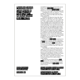 "Paradise Leipzig" von Calla Henkel und Max Pitegoff ist die zweite Intervention in der Ausstellung IDEAL Forum (19.05. - 05.12.21). Im Laufe des prozesshaften Projekts werden mehrere Interventionen verschiedener Künstler*innen die räumliche Struktur von IDEAL Forum kontinuierlich verändern.