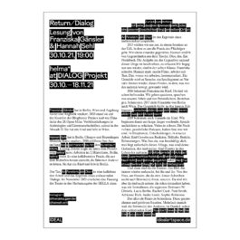 "Return / Dialog" ist die sechste Episode innerhalb der Ausstellung IDEAL Forum (19.05. - 05.12.21). Im Laufe des prozesshaften Projekts werden mehrere Interventionen verschiedener Künstler*innen die räumliche Struktur von IDEAL Forum kontinuierlich verändern.