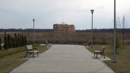 /// The three-storey building erected for the storming is supported by a massive metal construction with large canvases with parts of the facade printed on them. Bullet holes, blind windows and the original inscription "Dem Deutschen Volke" (To The German People) can be seen. With 10,000 spectators in stands on site and a live TV broadcast, the key scene of Russian war commemoration is restaged as a major media event.