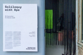The work Soliloquy with Ape addresses this demarcation – between species, between human and animal, between nature and culture: A fictional conversation between the historical object and a literary character unfolds in several chapters. A text developed in response to the Nondescript, addressing and questioning it, is contrasted with fragments from the novel The Unnamable by Samuel Beckett, a novel that revolves around the dissolution of the (narrative) subject itself. The sound work becomes a monologue, soliloquy and dialogue at the same time. This effect is reinforced by the spatialization of the voices: They are omnipresent, wandering through the space and disintegrating into fragments of words.